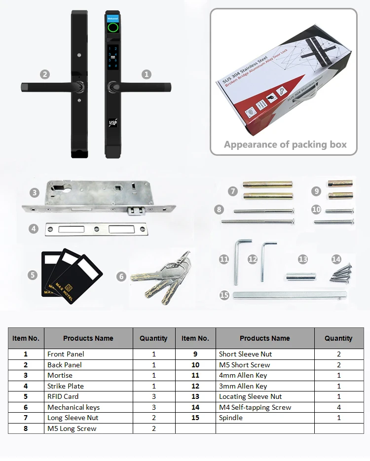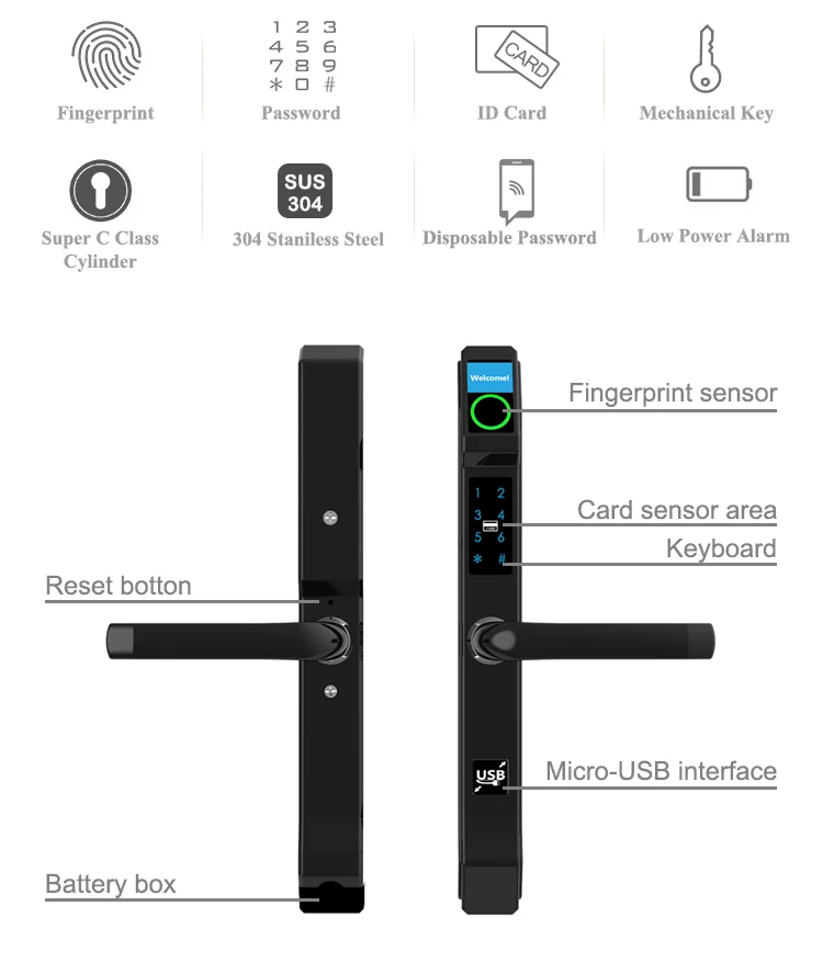 unlocking ways: | Fingerprint+Code+ ID card + Keys |