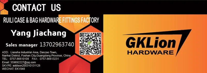 Founded in 2004, Foshan City Nanhai District Jinsha Liansha Ruili Case & Bag Hardware Fittings Factory is located in Jinsha Town, Nanhai District, Foshan City which is renowned as the Hometown of Hardware. Ruili specializes in manufacturing all kinds of hardware products with a workshop of over 3, 000 square meters. We possess a hundred of advanced machines, such as alloy die-casting machine and metal punching machine.
