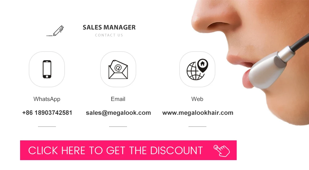 Contact Us: | Whatsapp: +86189 0374 2581 Facebook/Twitter/Youtube/Instagram: Megalook hair | |
