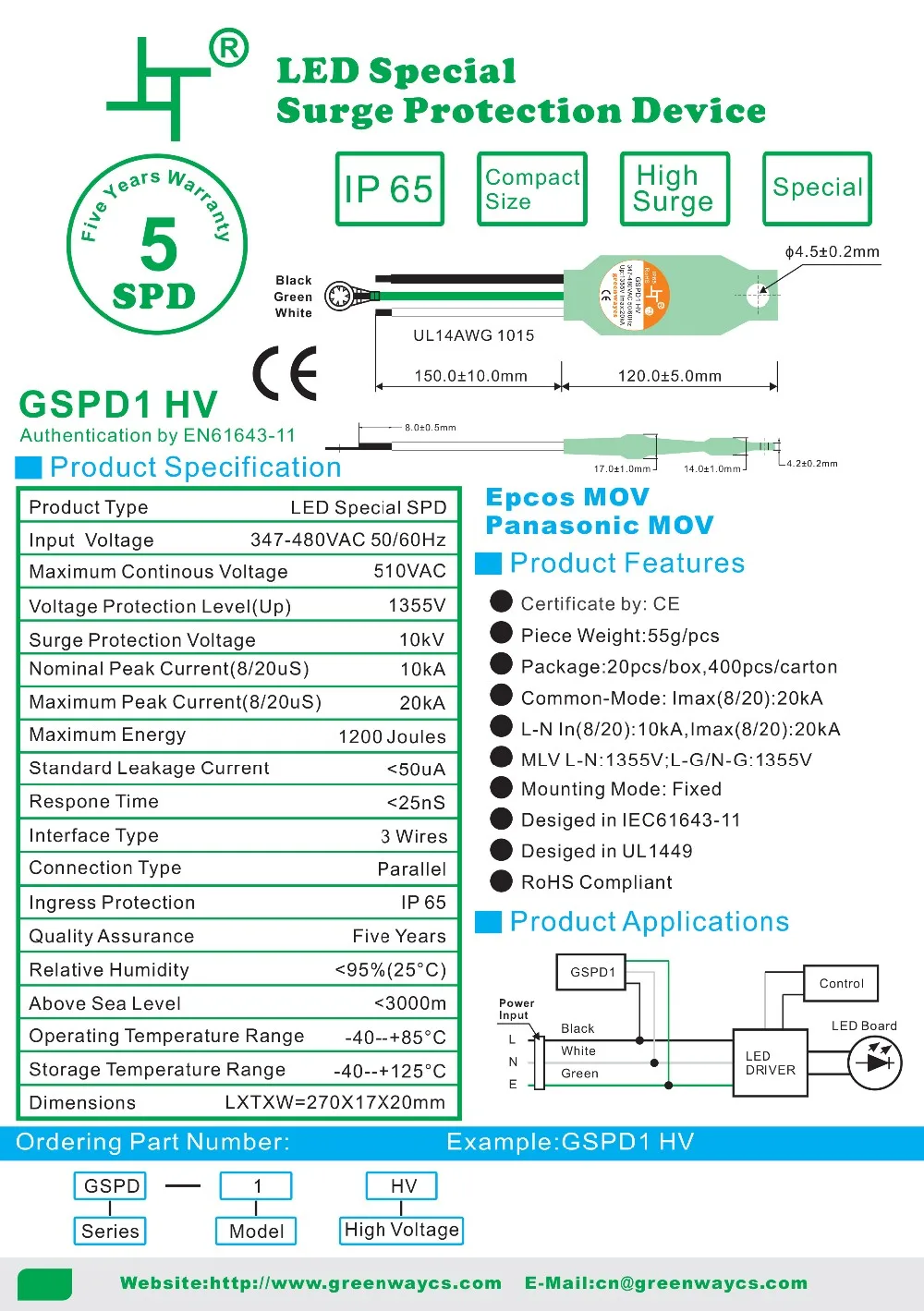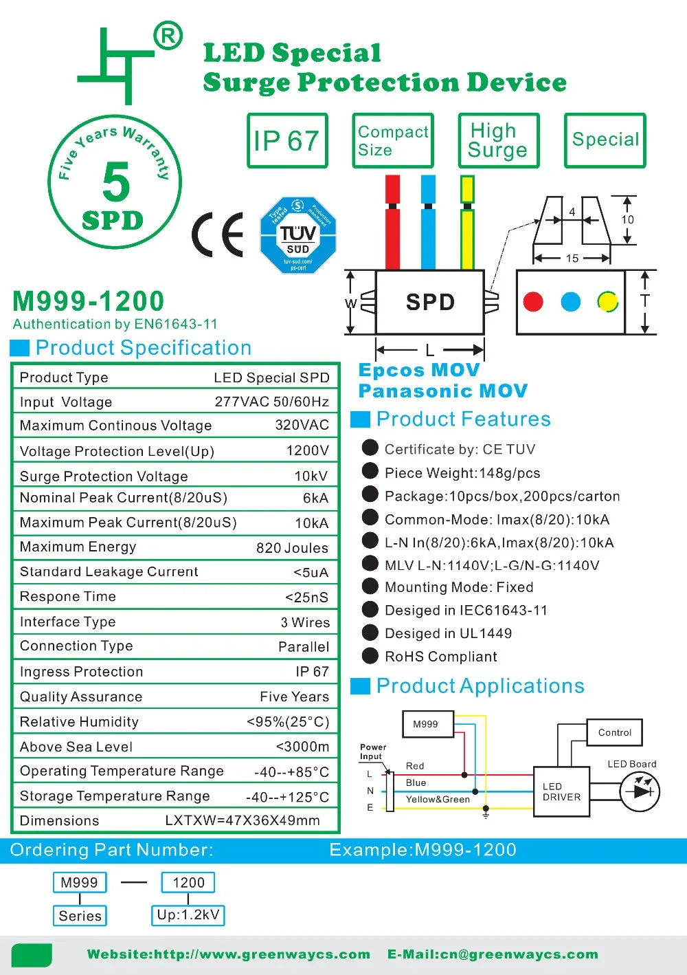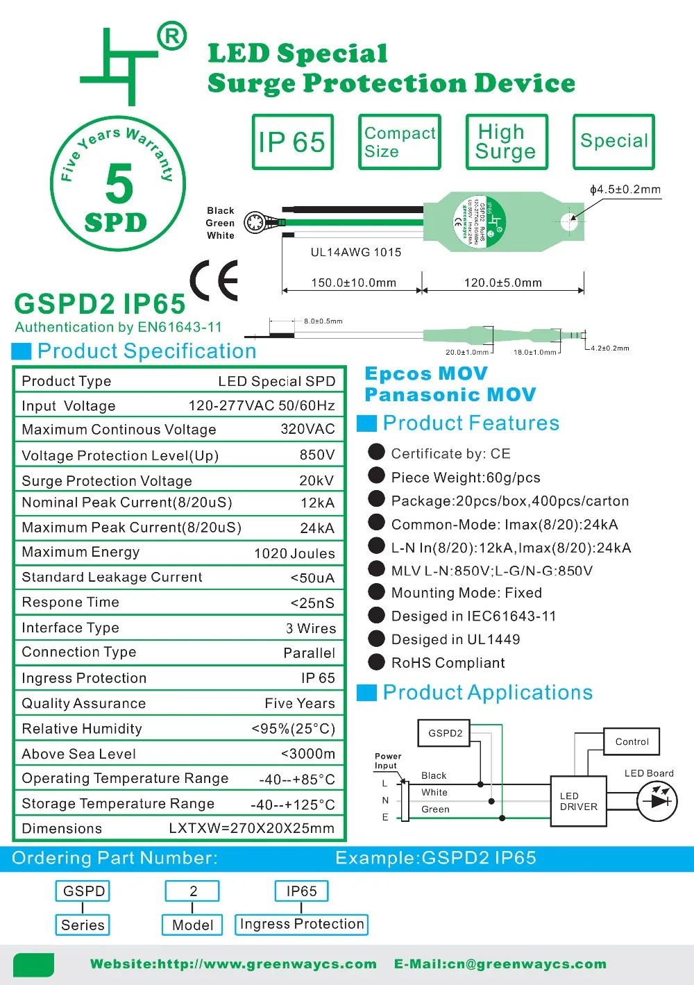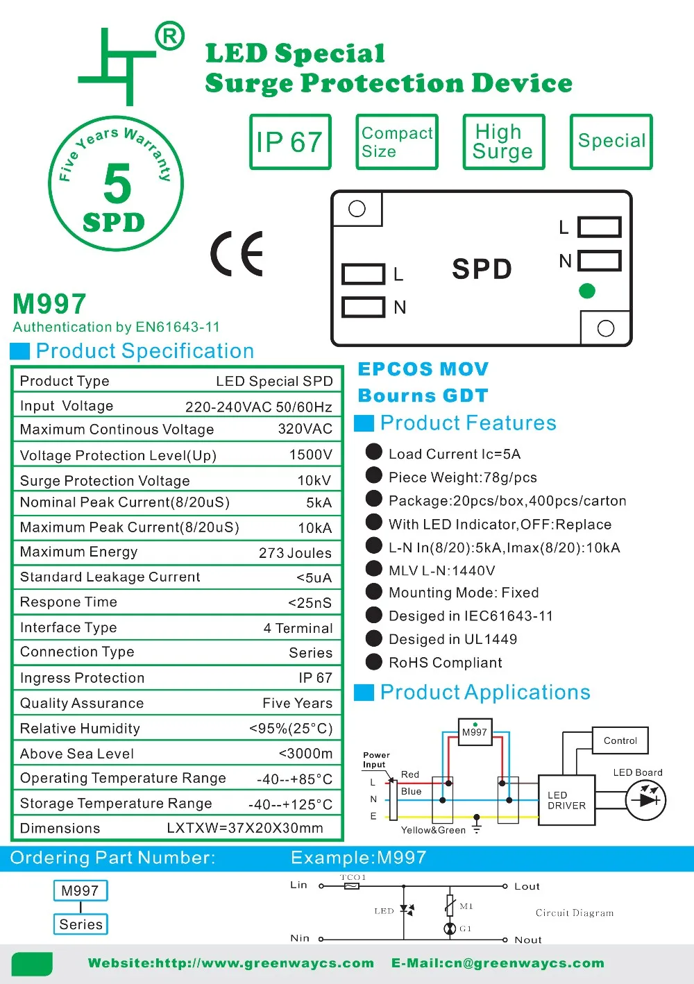 For Greenway GSPD3 surge protection device, the supply ability is 10000pcs per week, and goods in stock can be sent out within 3 working days after the payment reached, by UPS / DHL / TNT / EMS / FedEX or other way you preferred.