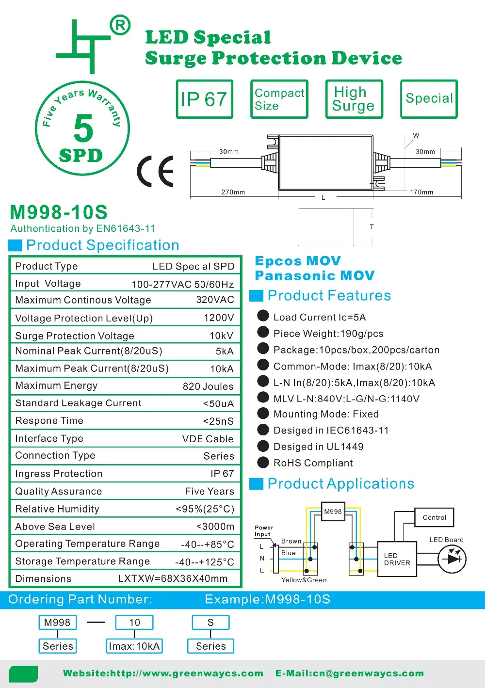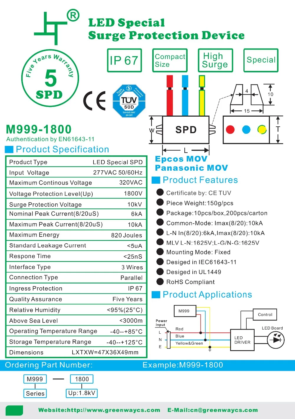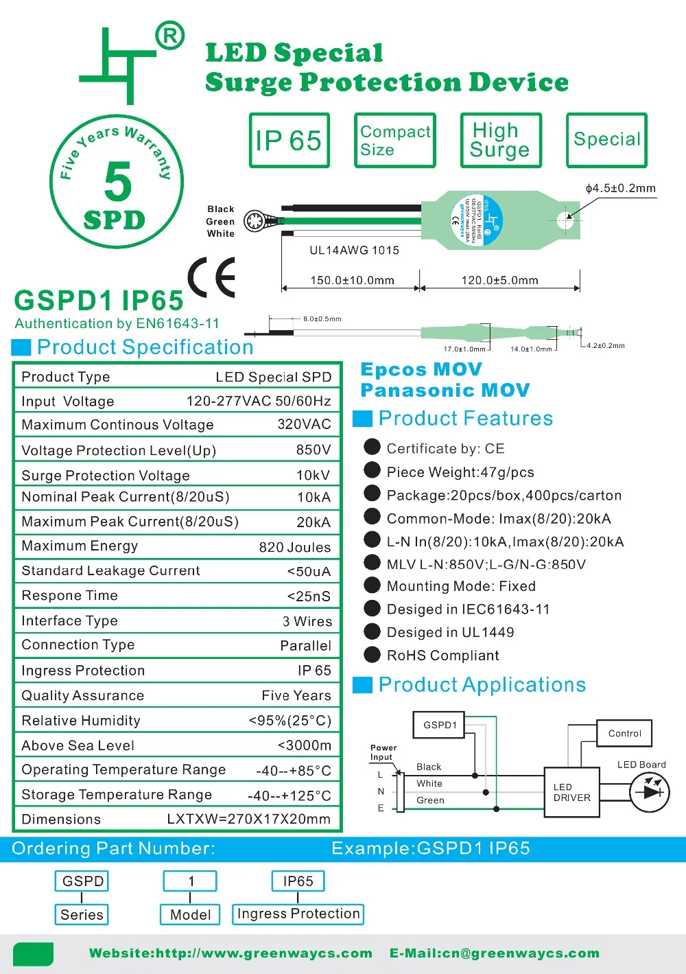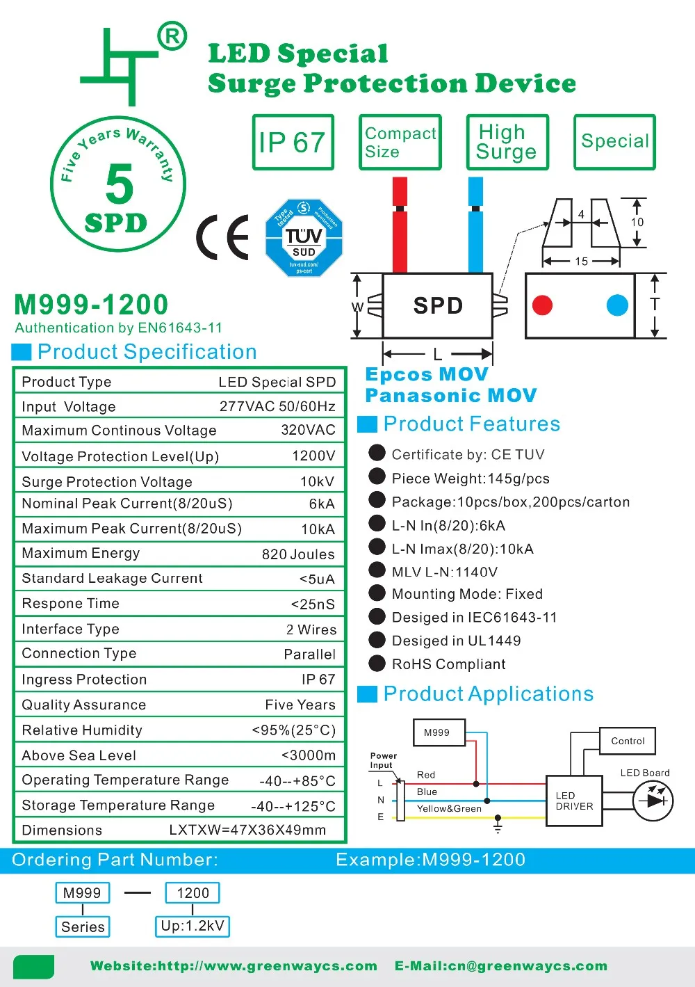 For Greenway GSPD3 surge protection device, the supply ability is 10000pcs per week, and goods in stock can be sent out within 3 working days after the payment reached, by UPS / DHL / TNT / EMS / FedEX or other way you preferred.