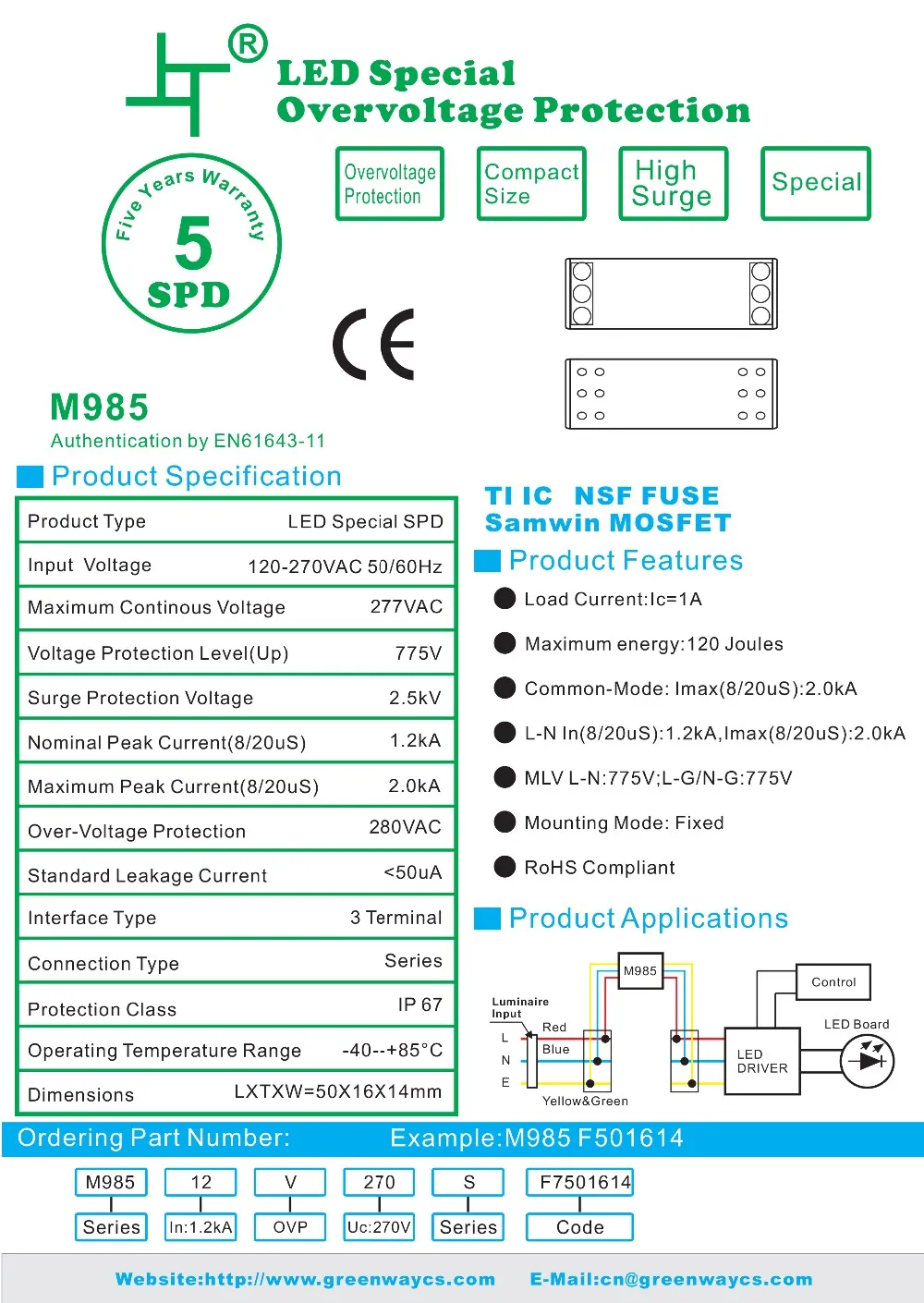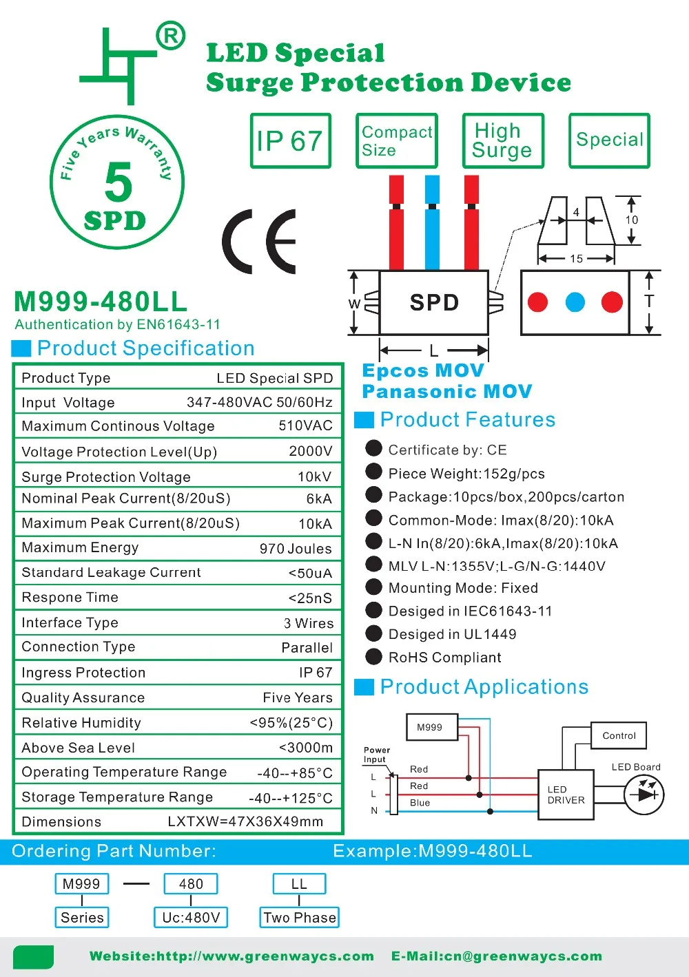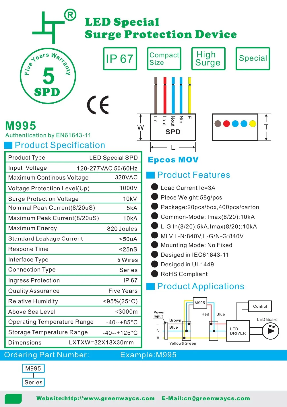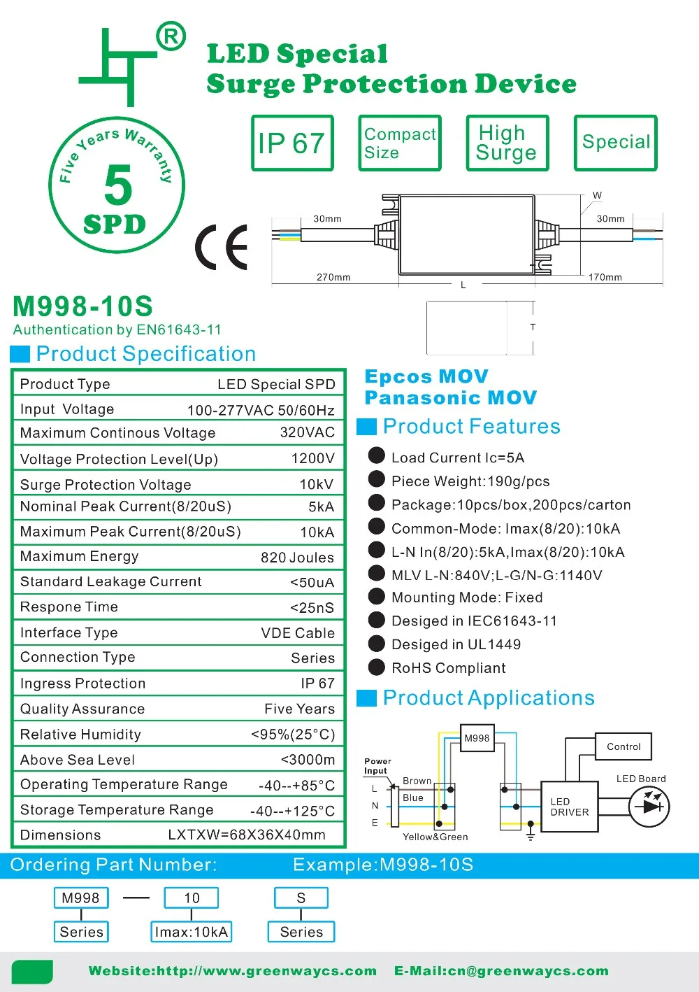 For Greenway GSPD3 surge protection device, the supply ability is 10000pcs per week, and goods in stock can be sent out within 3 working days after the payment reached, by UPS / DHL / TNT / EMS / FedEX or other way you preferred.