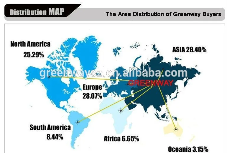 Our main market embraces China and world wide, leading the trend of the market, we provide popular and valuable products to meet the market. GREENWAY is ready to serve you as we are progressing. We are staying ahead and will be staying ahead. Come and work with us, stay ahead!