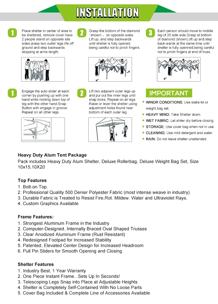 3x3 pop up tent big canopy tent diversify outdoor events with their colors, attracting the eyes of visitors. uminum frame and triangular planes roof ensures stability and made of UV-resistant polyester fabric, straight leg allows maximum use of space and light of design. The kit includes everything you need to carry and simple to set up storage.Can be use anywheere ,outdoor event ,promotion ,advertising ect.