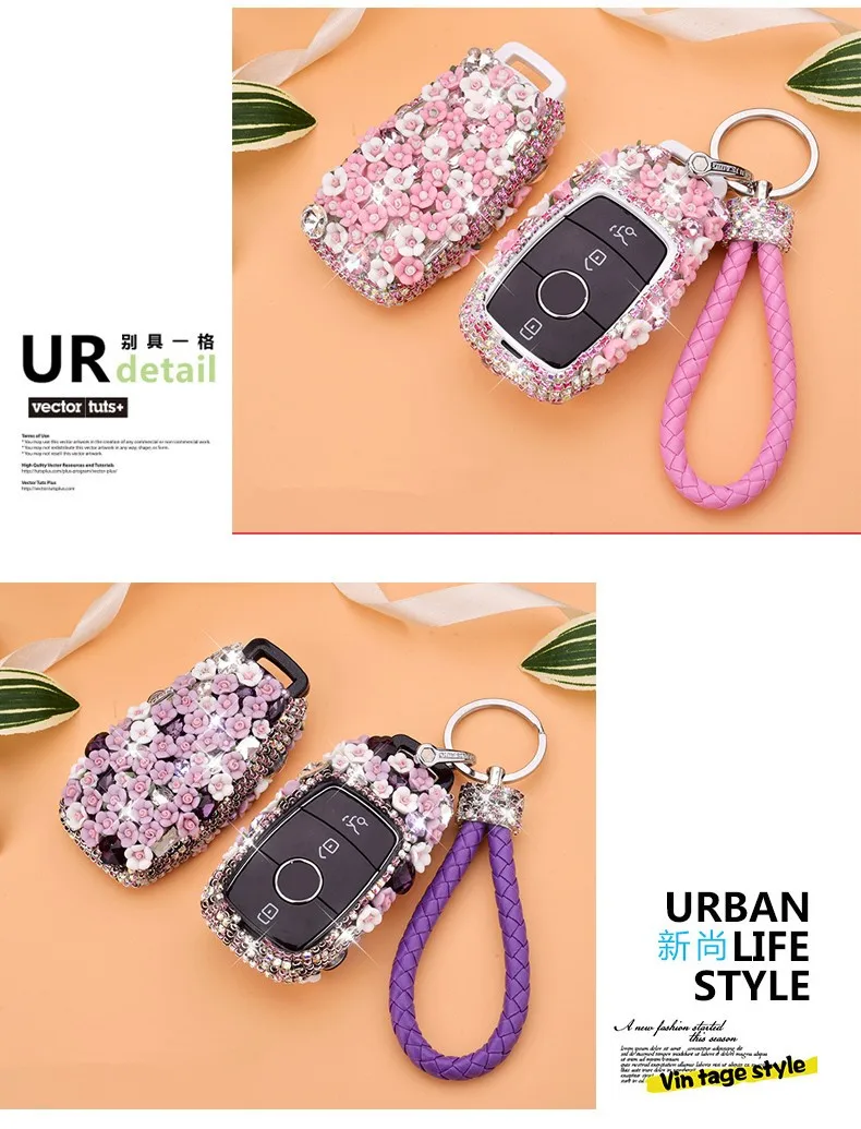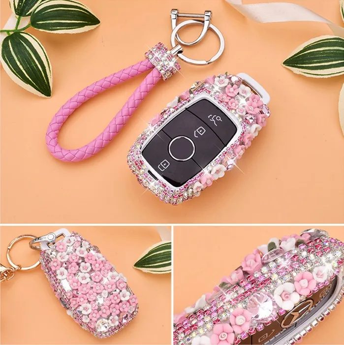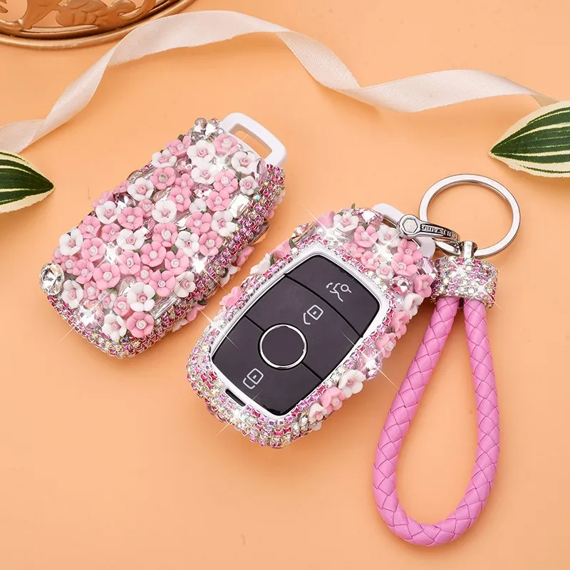 Women Ceramic carving PC Car Key Holder For Mercedes E Klasse W213 S213 GLE Cover with strap