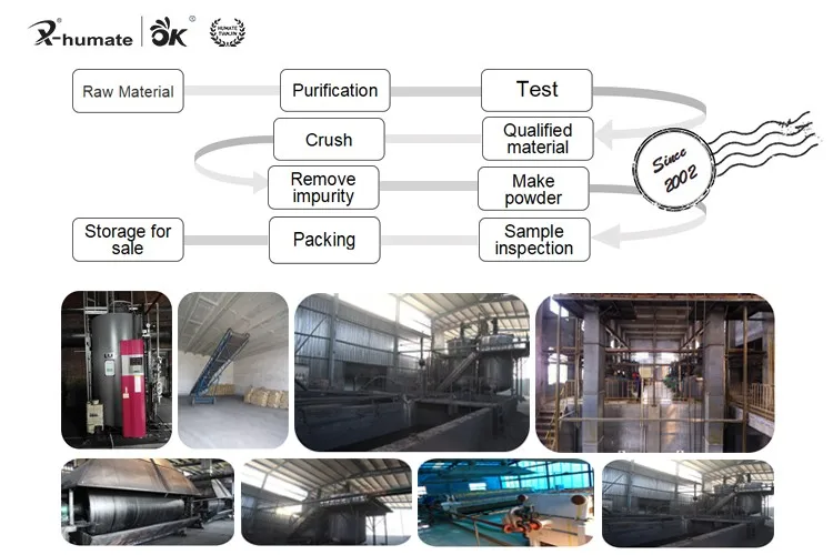 Our factory ,shenzhou Humate Biotech Co.,Ltd.,locates in Hengshui area ,Hebei ,which is near to Xingang port ,Tianjin.It possesses advanced production lines and completed quality control system,the quality of our products has come up to an international advanced level.We have developed three series of products,Humate series,fulvate series and Humate organic fertilizer series with more than 20types of products.Furthermore,we have created our own brands of X and OK,and the annual output of all humate series is over 30,000 tons