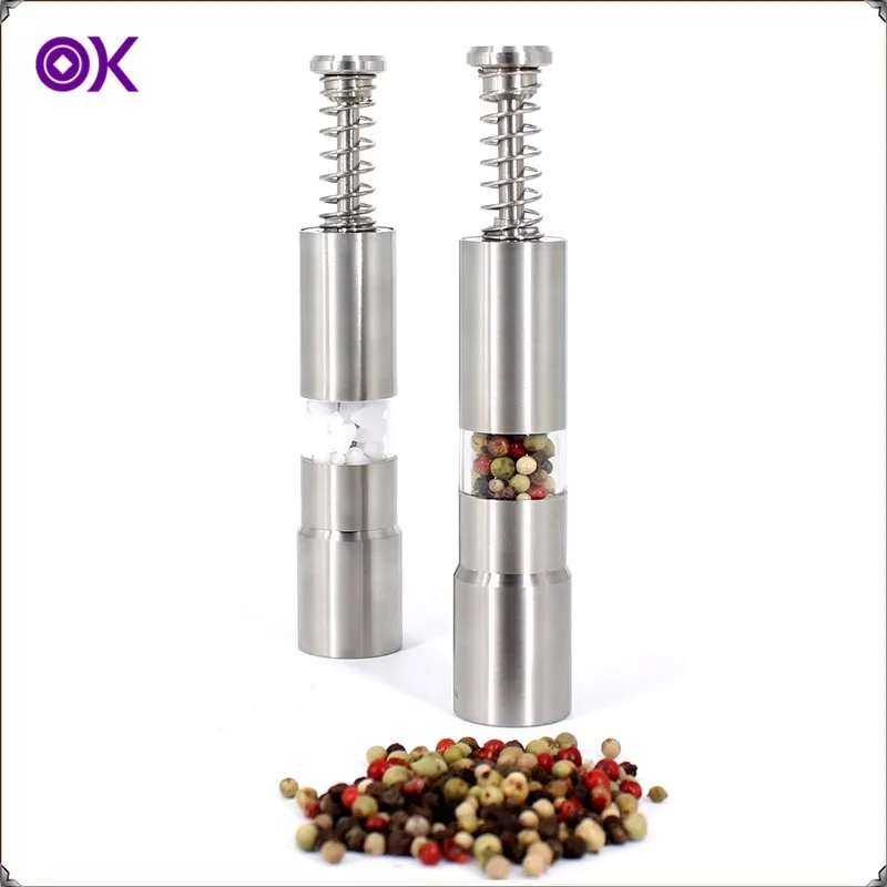 •\t✓SUPER CONVENIENCE -- Mini colorful aluminium salt and pepper grinder . Just fill up with salt or pepper and then push the nozzle down and it grinds easily