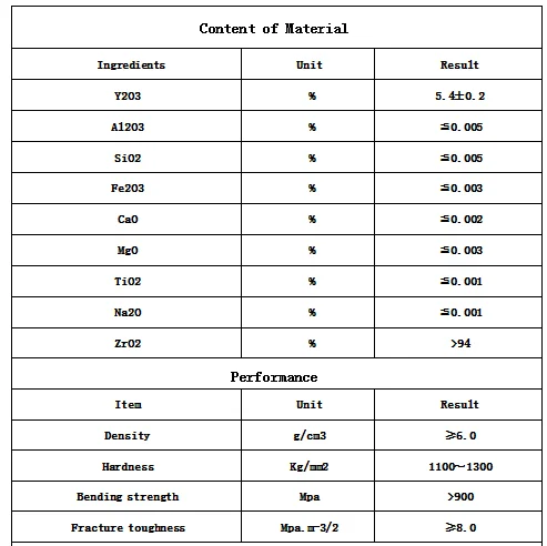 ZIRAE zirconia ceramic parts are made from ultra-fine, high-purity zirconium oxide powder, and processed by multiple techniques, including hot die-casting, isostatic pressing, dry pressing, injection molding,etc.