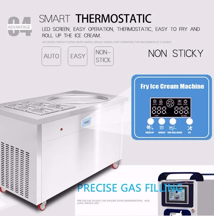 2.\tThis Thailand fry ice cream machine is thermostatic,easy to fry and roll up the ice cream.