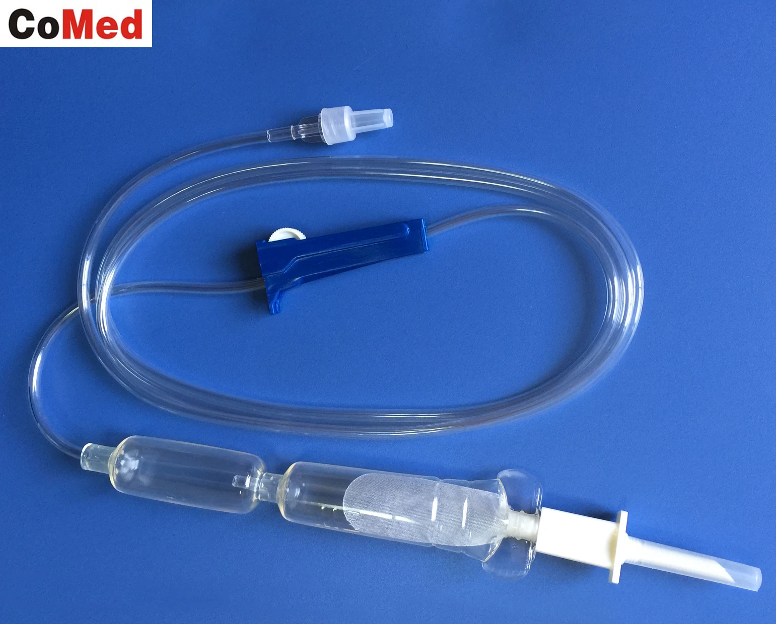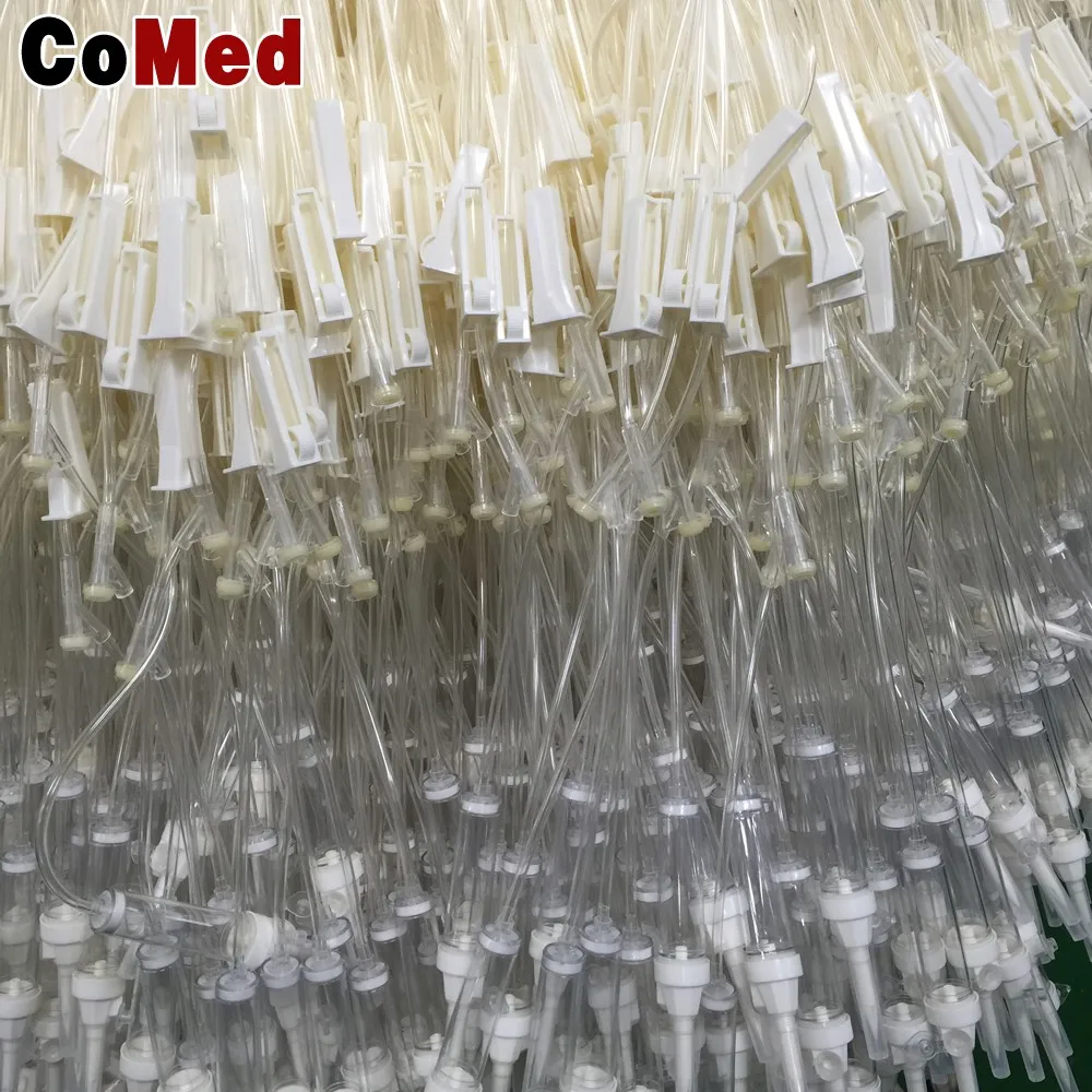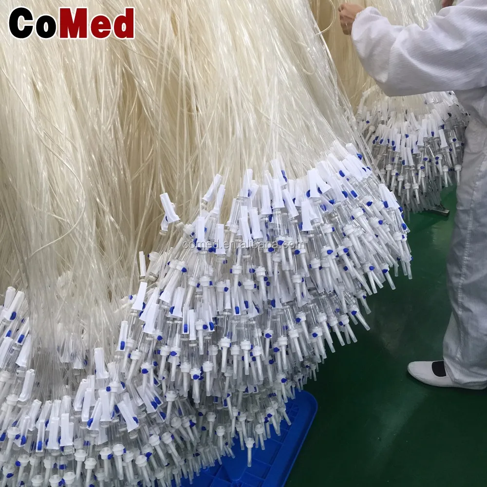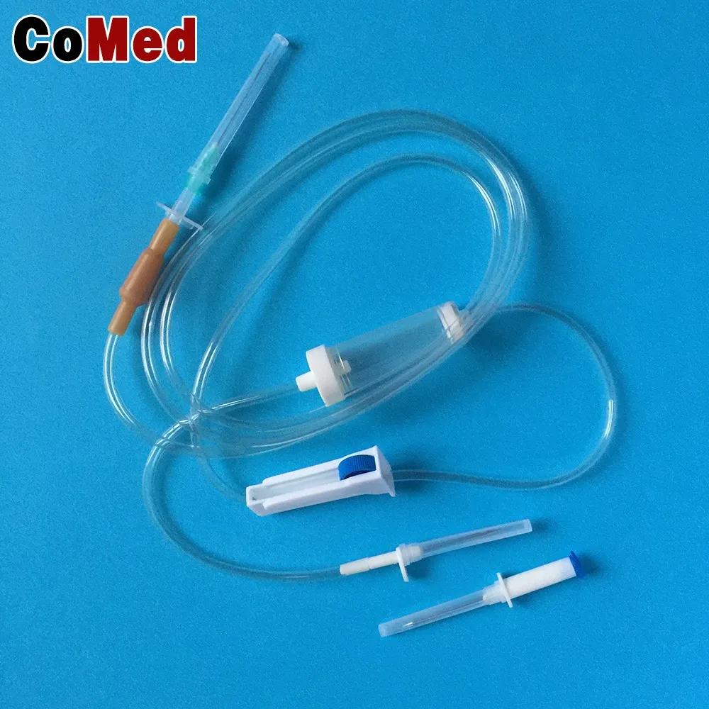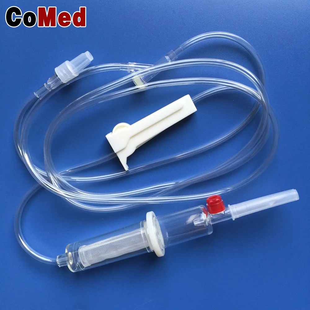 1. The infusion set is consisted of plastic spike, flow regulator, drip chamber,