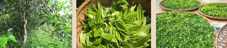 Pu'erh tea derives its name from the market town of Pu-er, where it was originally processed and sold, but it is grown on the Nuoshan Mountains. It is said that the unique taste of Puerh Tea was developed because it took weeks to transport the tea leaves by horseback to the town to be processed.