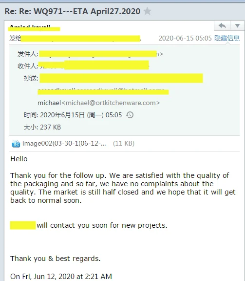 Payment terms | 30% deposit advance and balance after receiving the copies of B/L or by L/C at sight. | |||||
