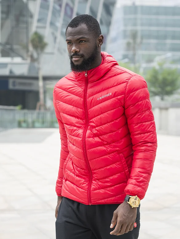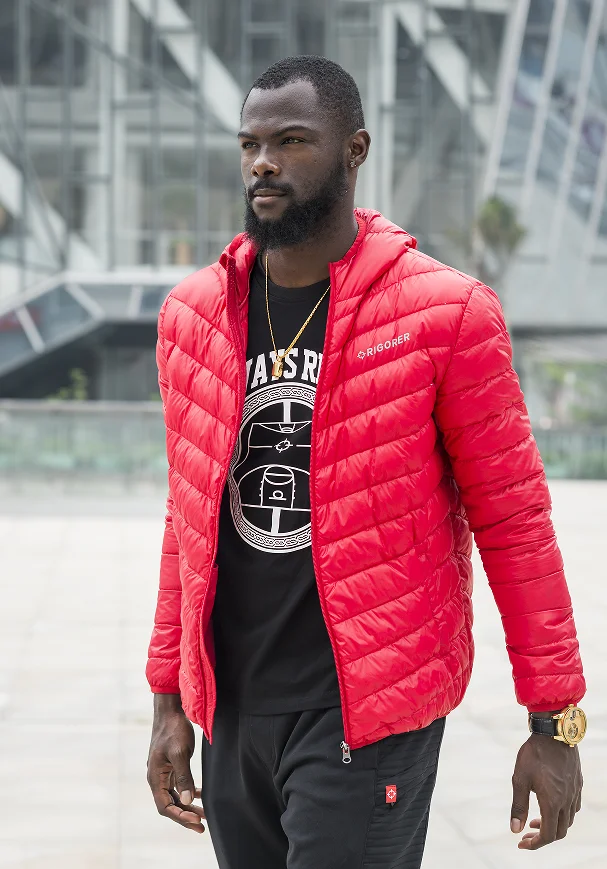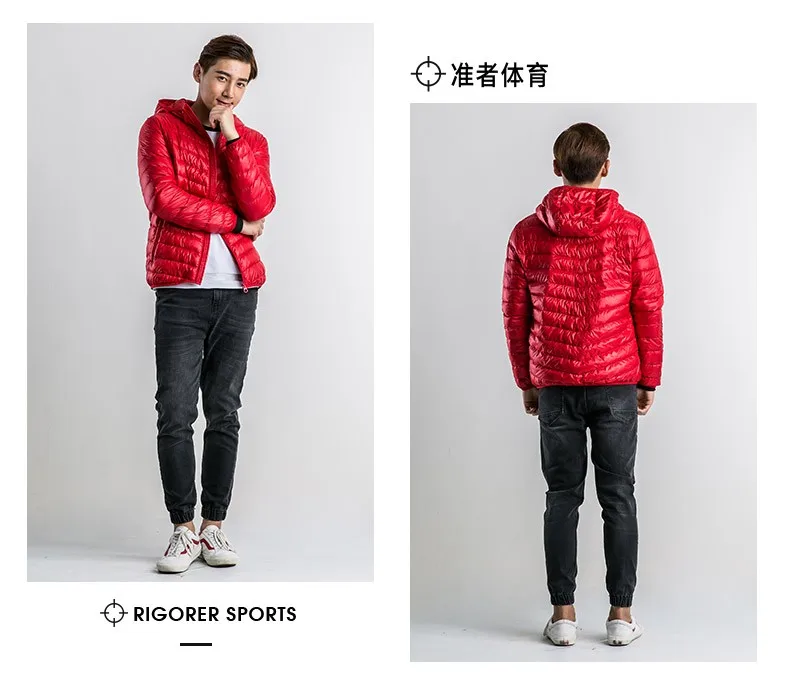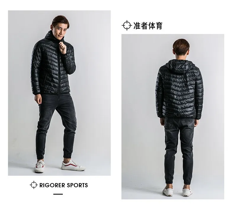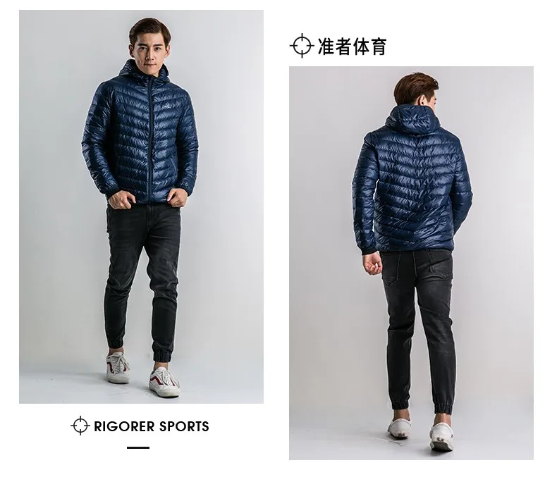 wholesale ODM light weight men's down coat blue and black color down jacket sports outerwear down wear Foldable long Sleeve