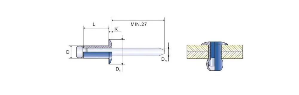 Rivets provide a way to join parts together when you don't have access to both sides. They consist of a rivet (a hollow body with a head) and a mandrel (a thin nail with a bulbed end). Rivets require a setting tool for installation. Riveted joints are strong, tight, and extremely reliable.
