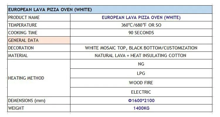 1) high-quality pizza oven , natural lava rock and stainless steel;