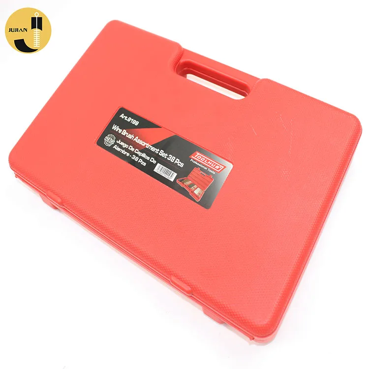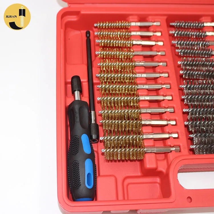Set includes: 36pc wire brush: stainless steel, brass and nylon (12 pieces of each) - 4" length (2" brush, 2" shank); 1/4" hex