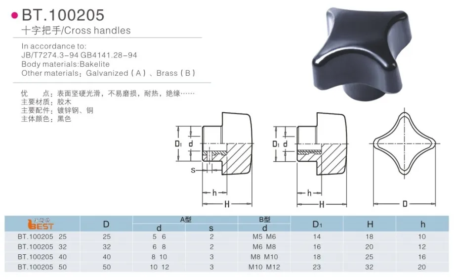 BT 100205 High Quality Luxury Modern M8 Female Black Plastic Cross Handle Knob
