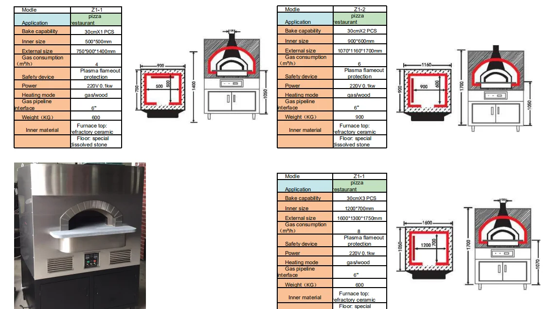 1) high-quality pizza oven , natural lava rock and stainless steel;