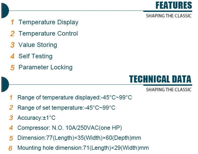 Range of temperature displayed:-45℃~99℃