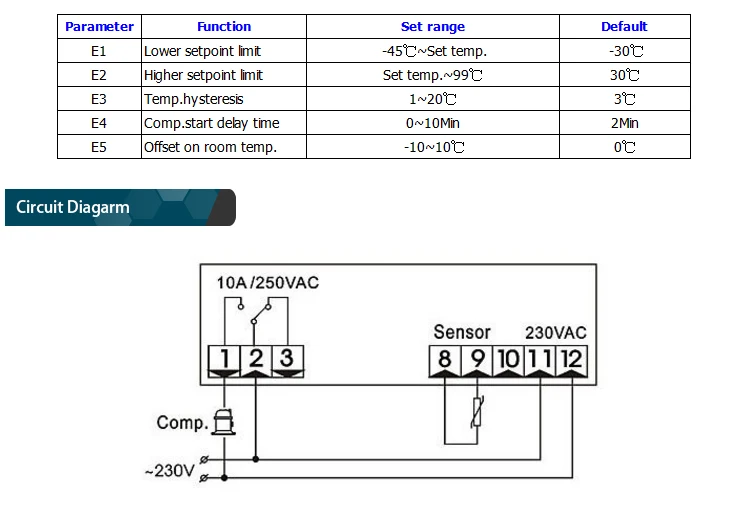 E3 | Temp.hysteresis | 1~20℃ | 3℃ |