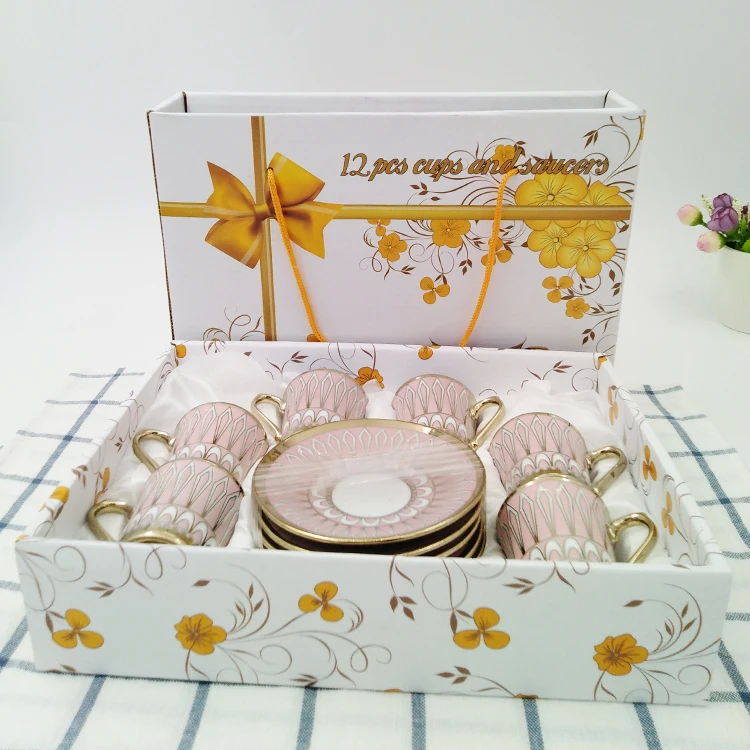 Product Type: | Wholesale pink fancy coffee tea cup and saucer sets with gold handle |