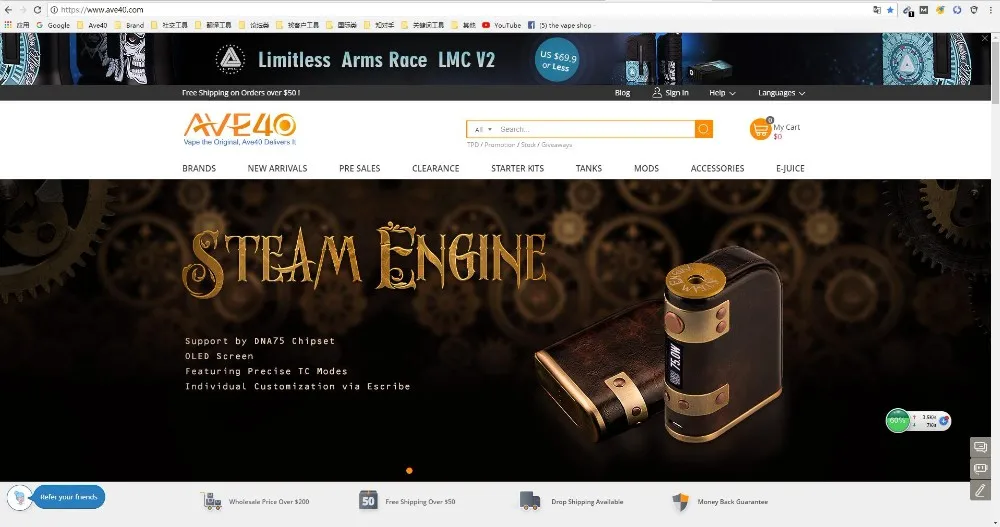 Alibaba express Limitless Arms Race 200w vape V2 box mod from AVE40