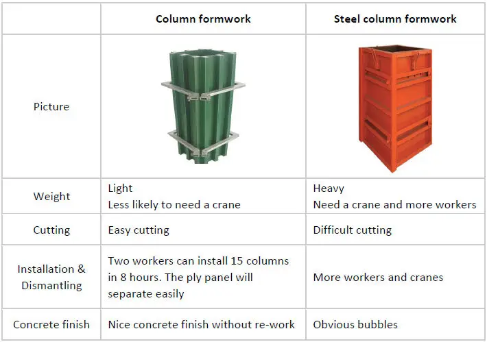 Column formwork uses high quality poplar as raw material, with PP plastic wrapping, match with fastener to build construction square column series.
