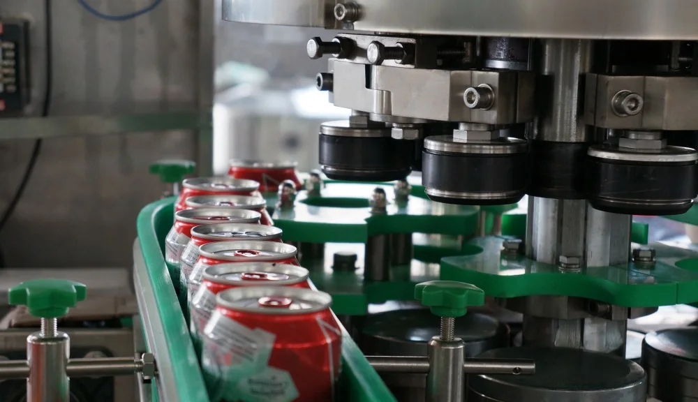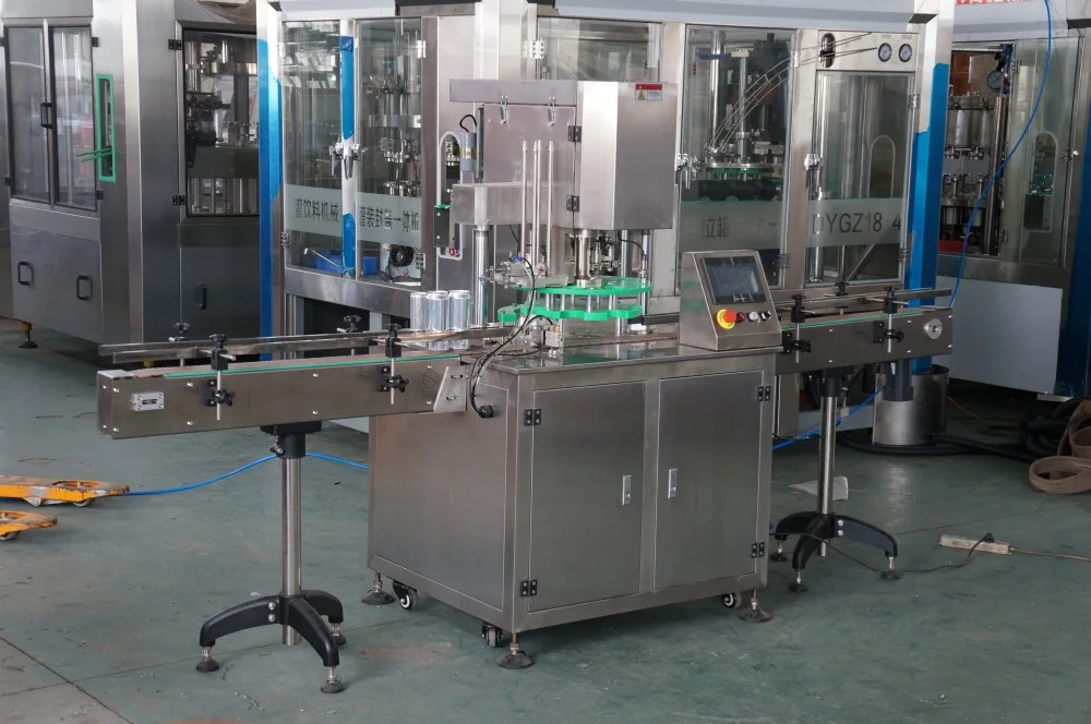 This new automatic hand pull zip-top aluminum tin cola can sealing machine controlled by PLC and photoelectric control system.
