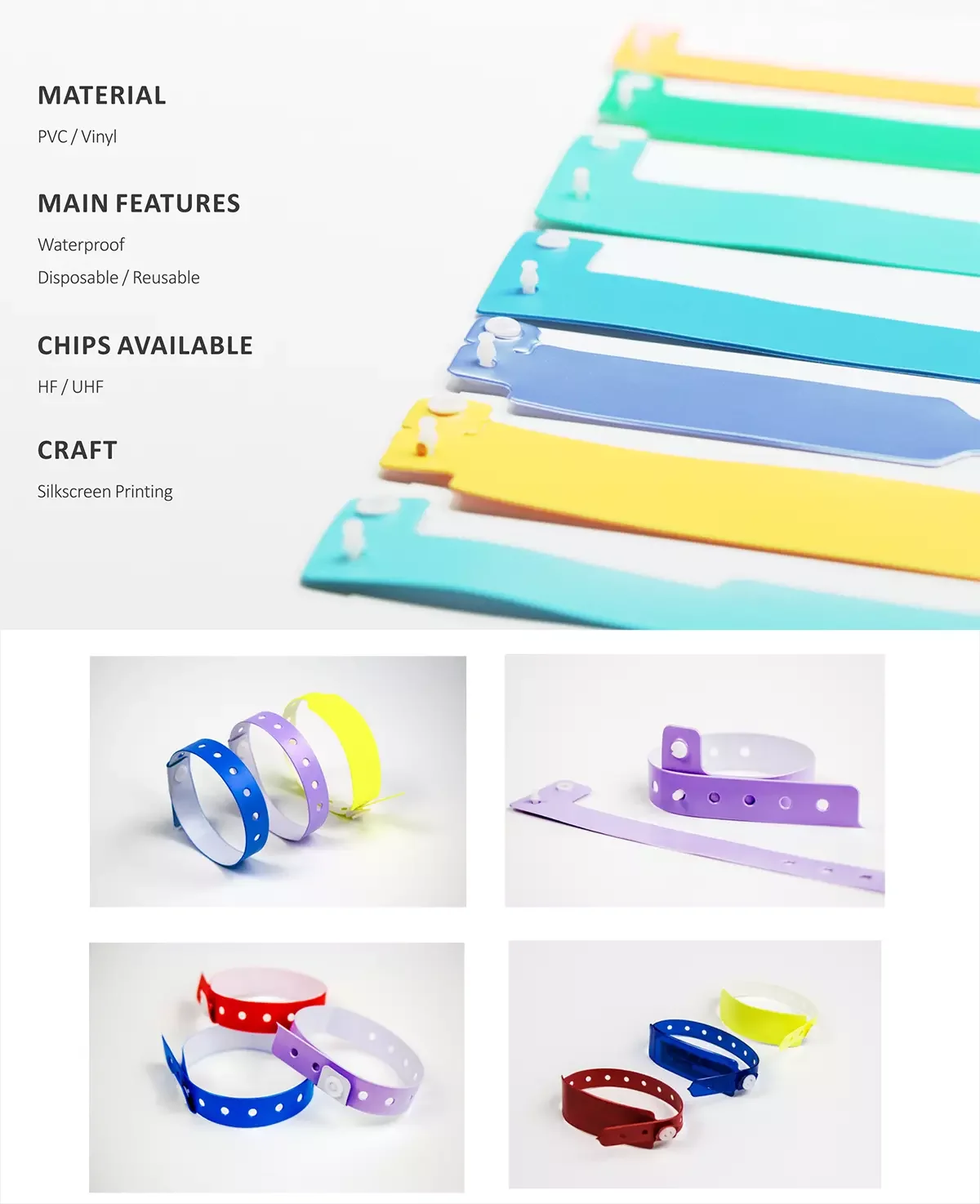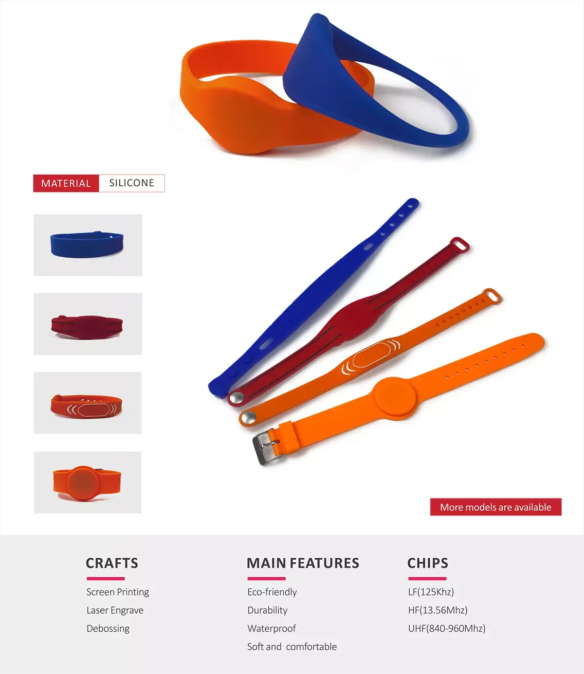 Available Crafts | Paper and soft PVC: screen printing; Fabric: silk screen printing, thermal transfer printing; Silicone: screen printing, embossed, laser engrave, custom design is welcomed |
