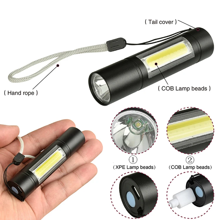 Feature:Q5 led+cob,usb charged,non-zoomable