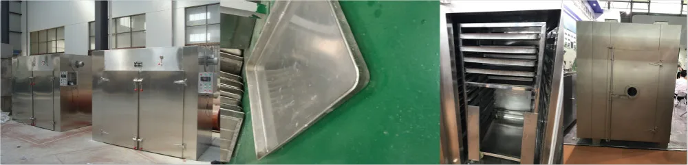 The drying oven is suitable for drying and dehydration of material and product for pharmaceutical, chemical, food, agricultural, aquatic, light industry, heavy industry; such as medicine raw material, medicine, Chinese herbal medicine, extractum, granules, powder, pill, packing bottle, pigment and dyes, dehydrated vegetables, dried fruit, sausages, plastic, resin, electric elements, varnish, and etc.