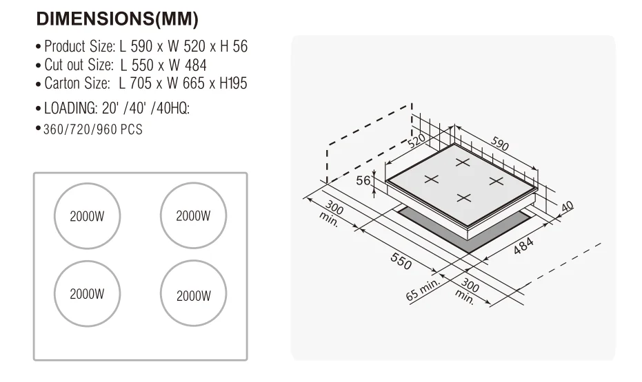| Cut out size | L550 * W484 |