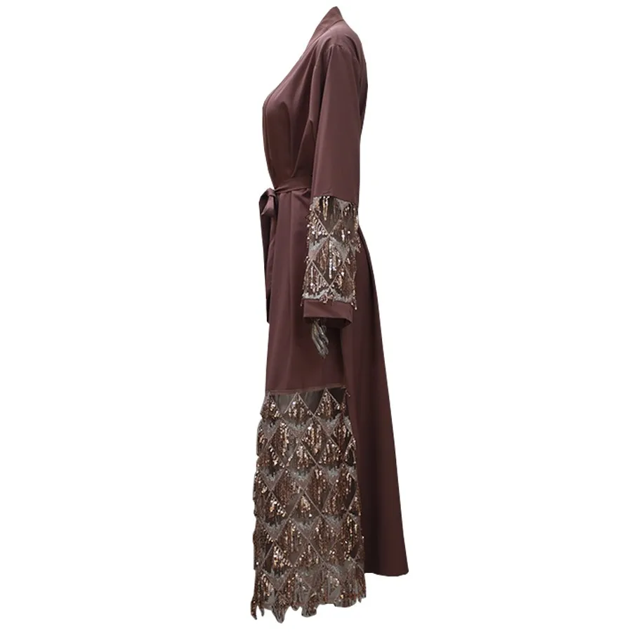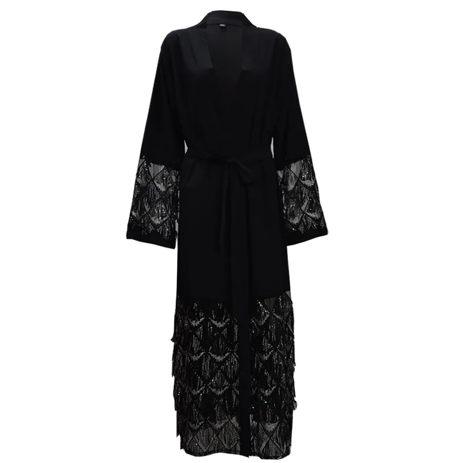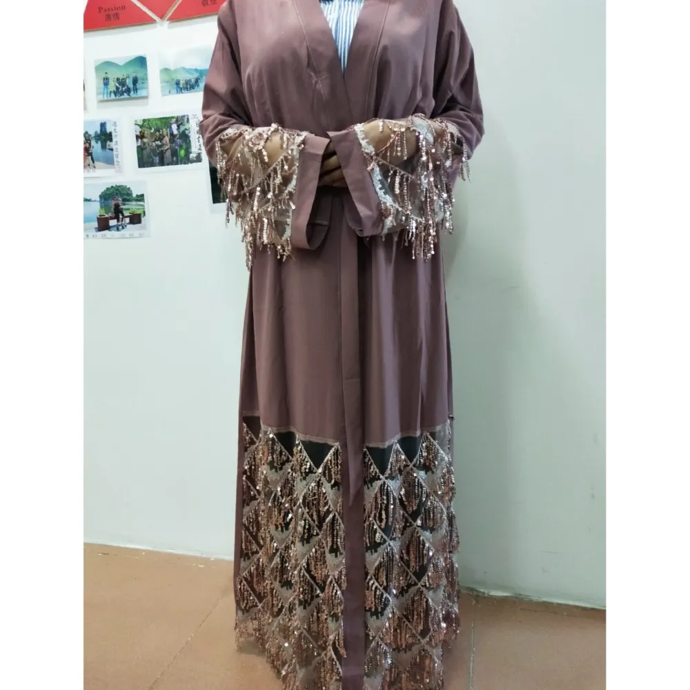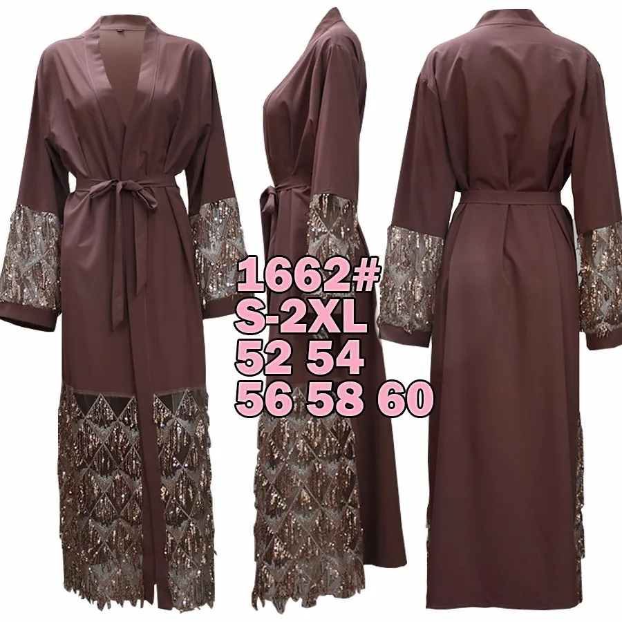 1662# Fashion Muslim Abaya in Dubai Nida with Sequin Islamic Clothing For Women Jilbab Djellaba Robe Musulmane Turkish Baju