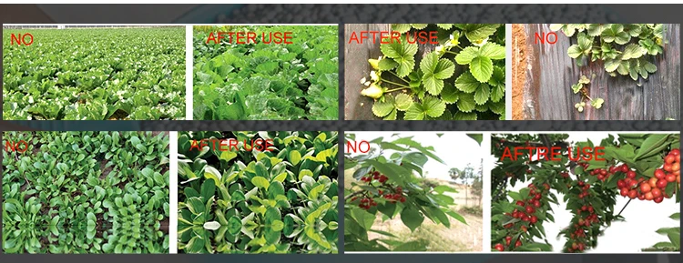l Small molecule polymer carbon and seaweed extract, those are pure natural biological stimulating hormone with small molecular weight. They are easy to be absorbed, accelerate nutrient return, compensatory and enough carbon sources, significantly increase the rate of carbohydrate synthesis, improve soil condition , stimulate root absorption of nutrients, delay root aging, strong adhesion can improve foliar absorption and utilization, improve crop resistance.