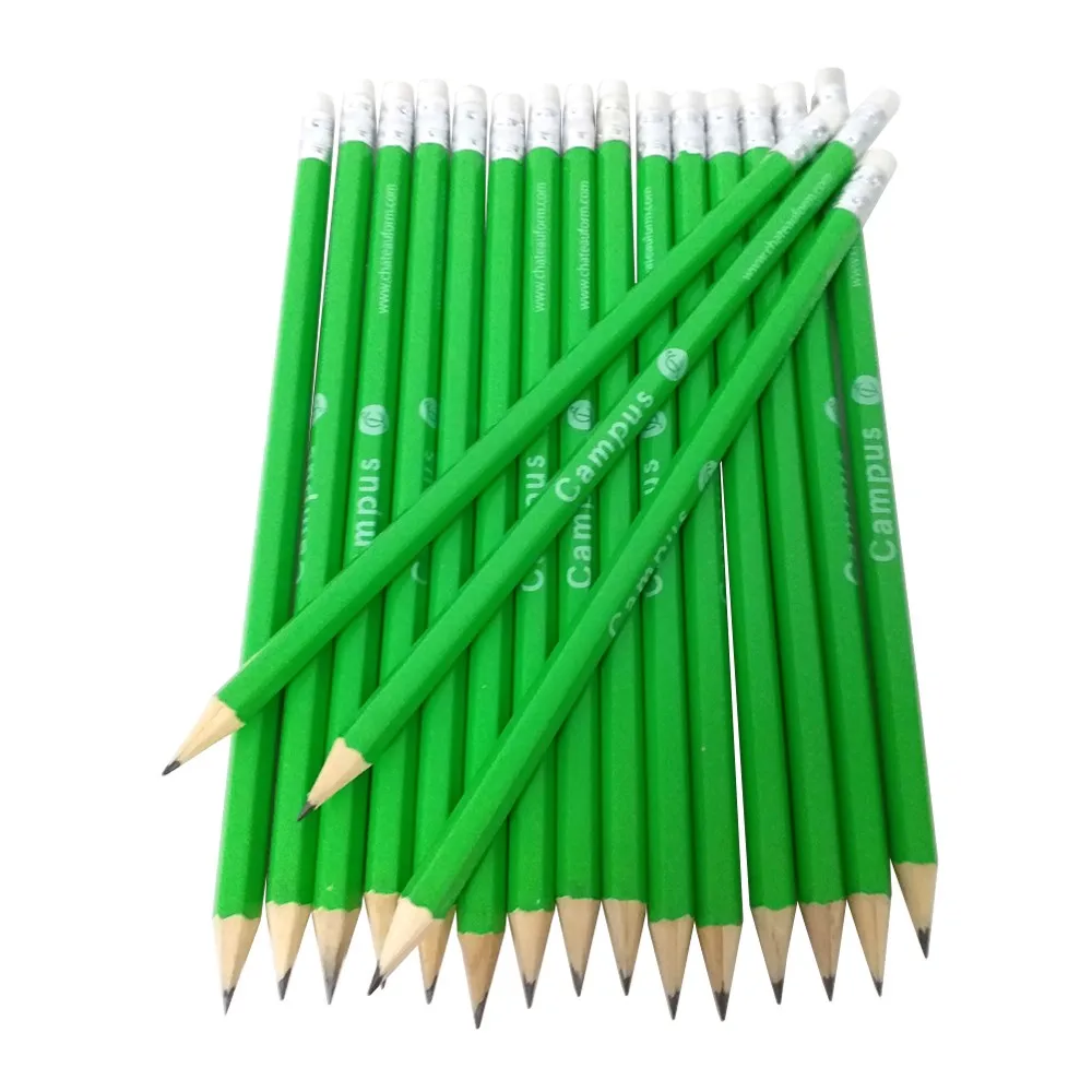 Wooden HB Lead Graphite Round Hexagonal Shaped Standard Pencil Imprint Logo Custom Natural Black Wood Green Loose FSC Basswood