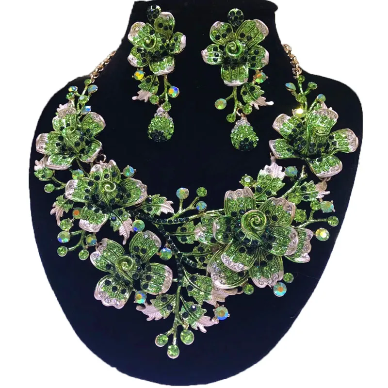 Nigerian big flower diamond coral beads set wedding turkish gold jewelry green flower party african jewelry