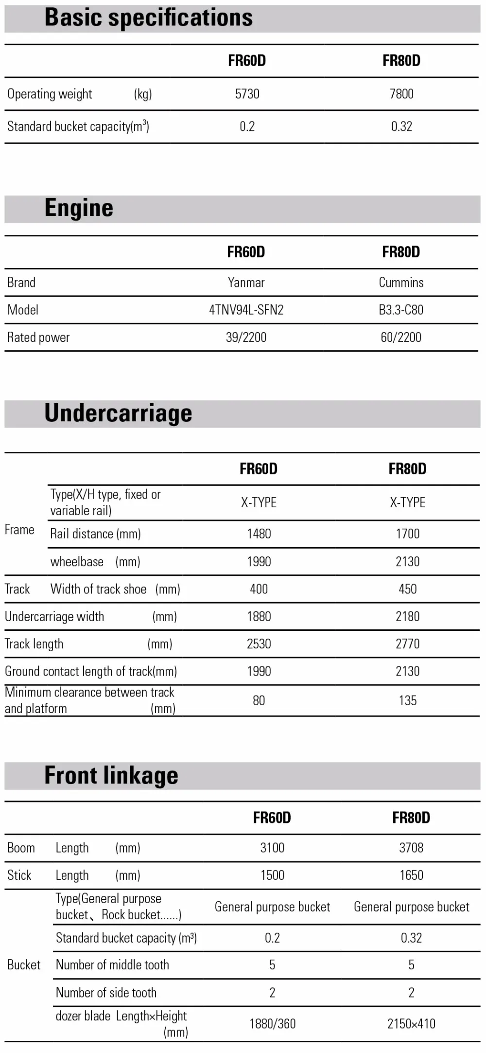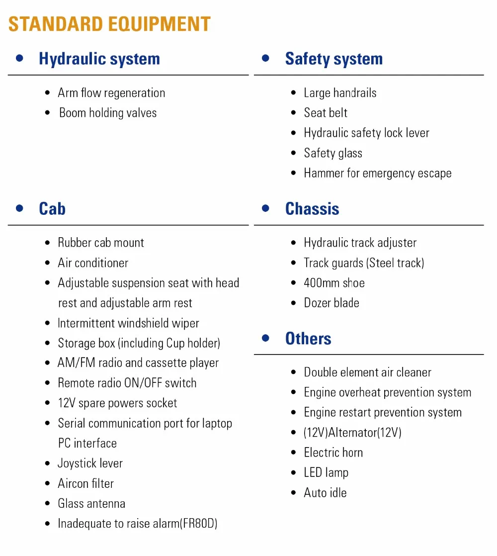 2.FR60D is equipped with Japanese Yanmar engine (FR80D Cummins Engine) under perfect combination of high reliability and fuel efficiency. The engine produces outstanding power and is known for its durability.