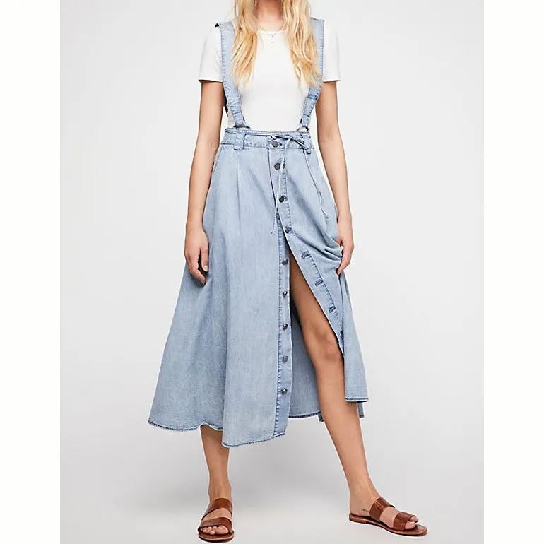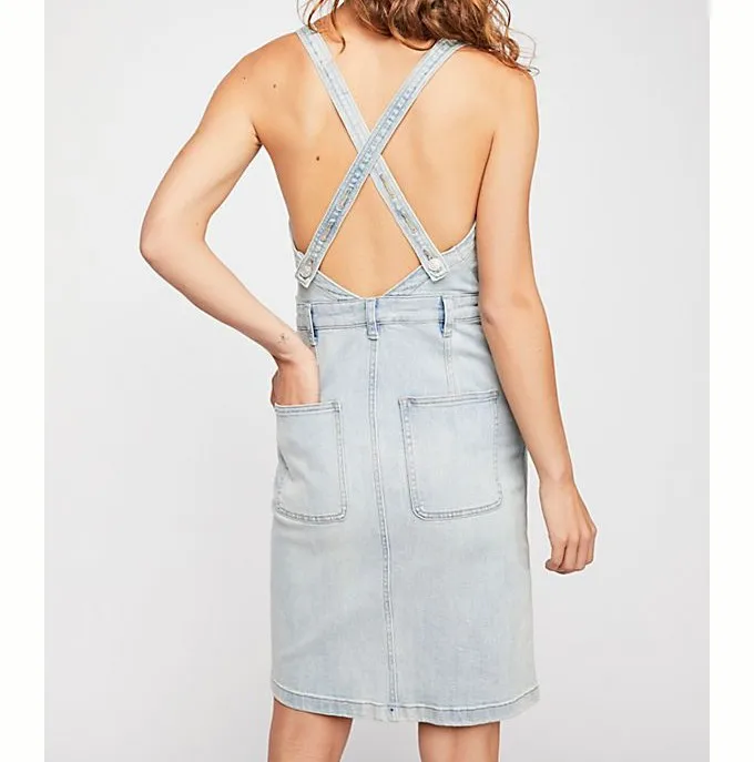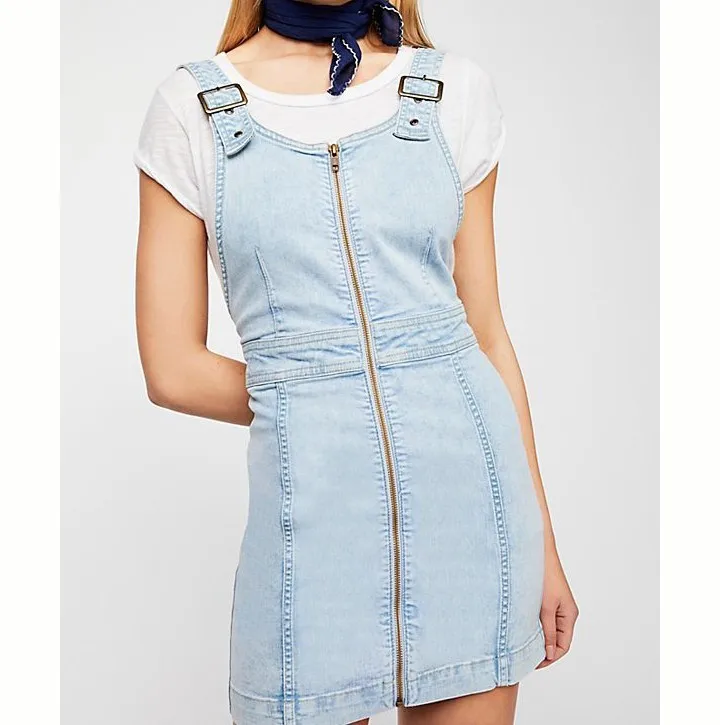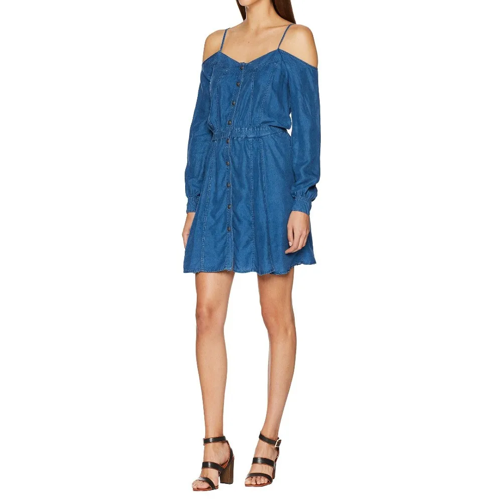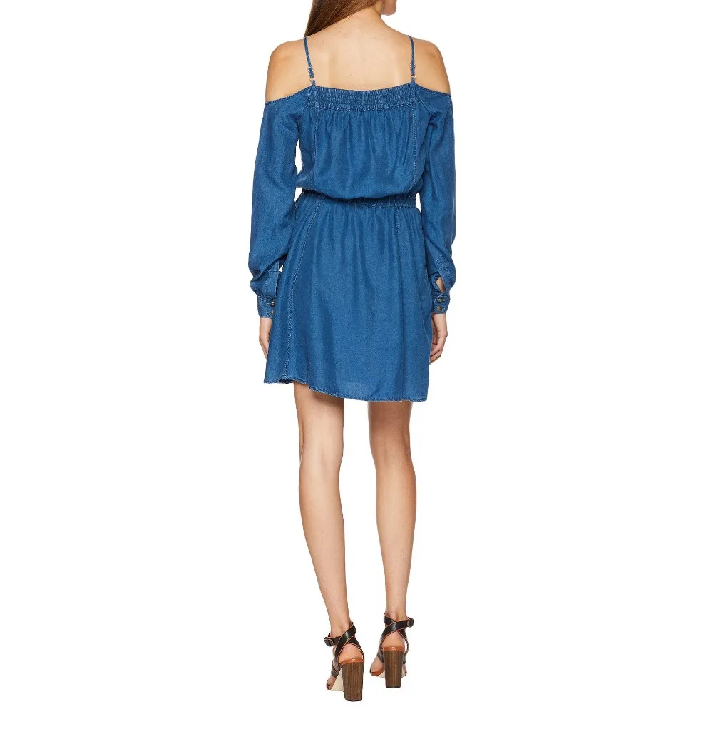 OEM service Fashion fast delivery custom Denim Dress with Bare Shoulders .