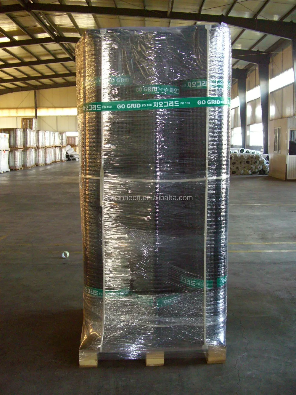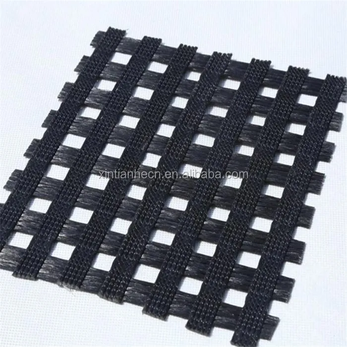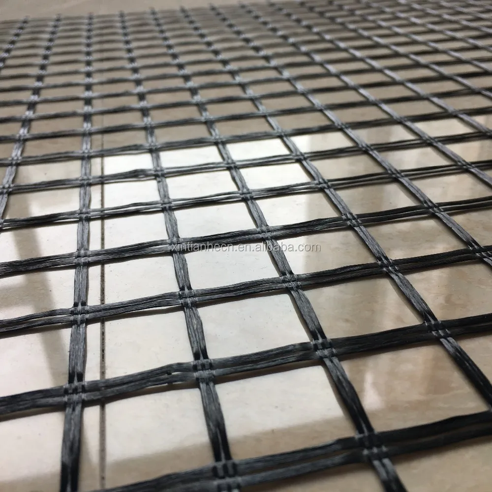 High strength polyester warp-knitting geogrid adopts high strength, high modulus, and low shrinkage twisting industrial polyester fiber as raw material. It is warp knitted with oriented structure and in the condition of no bending among warp and weft direction. Its crossing points are bundled and bended together by high strength long polyester fiber forming tough conjunction. Then it forms into mesh size product after coated with high quality water-soluble PVC which improves its strength, shearing force, various technical standards and gives full paly of its mechanical property.
