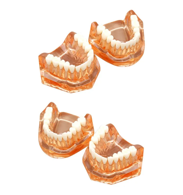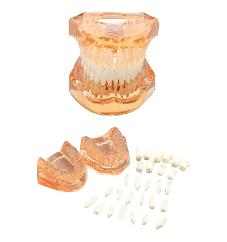 Upper & lower jaw model set in hard completely transparent material model, soft gum, the teeth root is visible and removable, with no hinge.