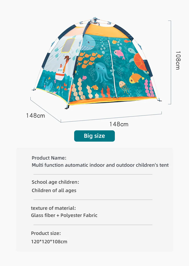 The company has met the European BSCI system certification, and has Wal Mart ID, Disney factory, etc. The designs and products have beautiful appearance, safety and stability, convenient disassembly and transportation to meet customer requirements; It adopts advanced management mode, high-quality design and production force, advanced production equipment and instruments, and can design all kinds of tent products based on customer requirements.