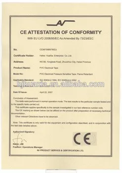 A thin premium grade plasticized PVC film coated with an aggressive rubber based adhesive with good characteristics. It is highly conformable and unaffected by most chemicals and moisture. Meet ROHS requirement. It does not contain substances harmful to human body such as lead and cadmium. This products APPROVED by CE UL CSA