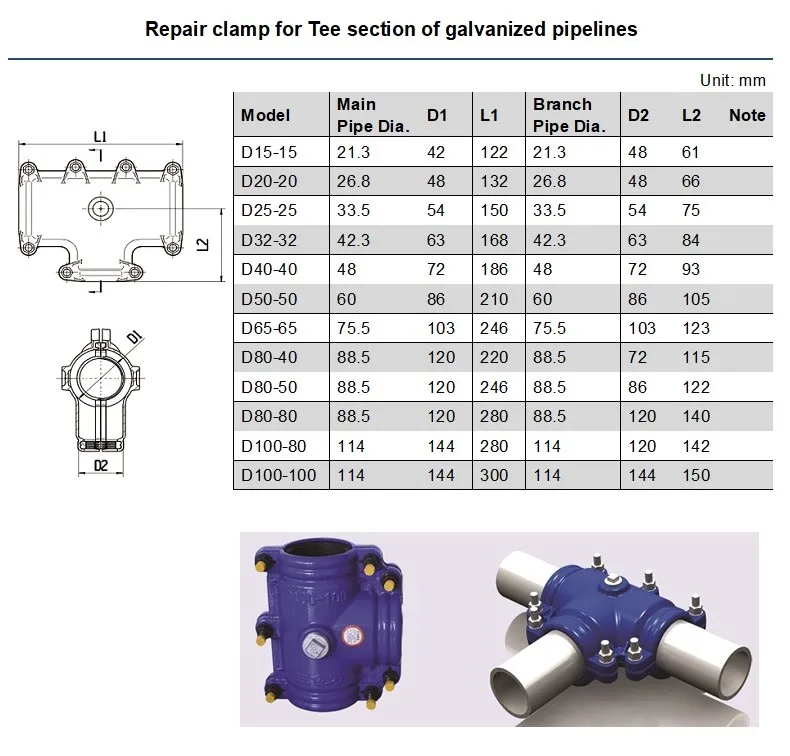 Water leak repair / Pipe quick repair clamps for repairing defects, dents, gouges, corrosion, and leaks in pipelines. It is a costly and resource-intensive task and restoring pipelines to their maximum operating pressure without having to replace the entire section. It is new design and very easy to install with water pressure. No need turn off water supply.