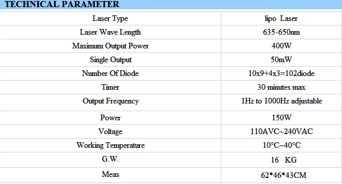 Technical Parameters Of Our Lipo Laser Machine :