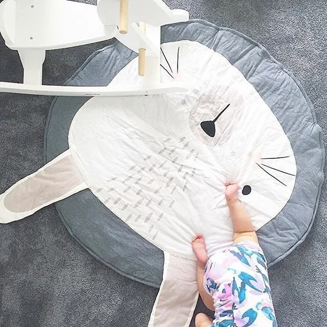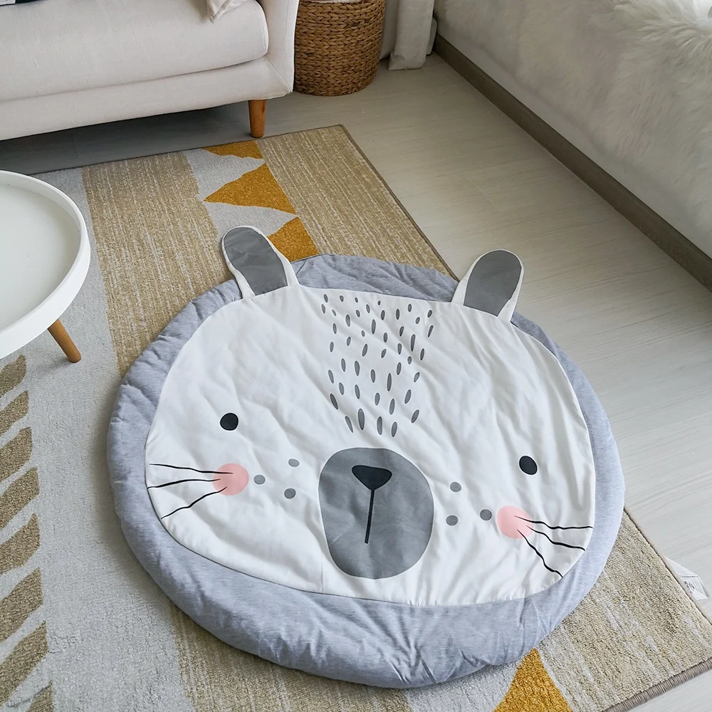 INS hot sale gray bunny game floor mat carpet baby child round mat crawling cotton mat .