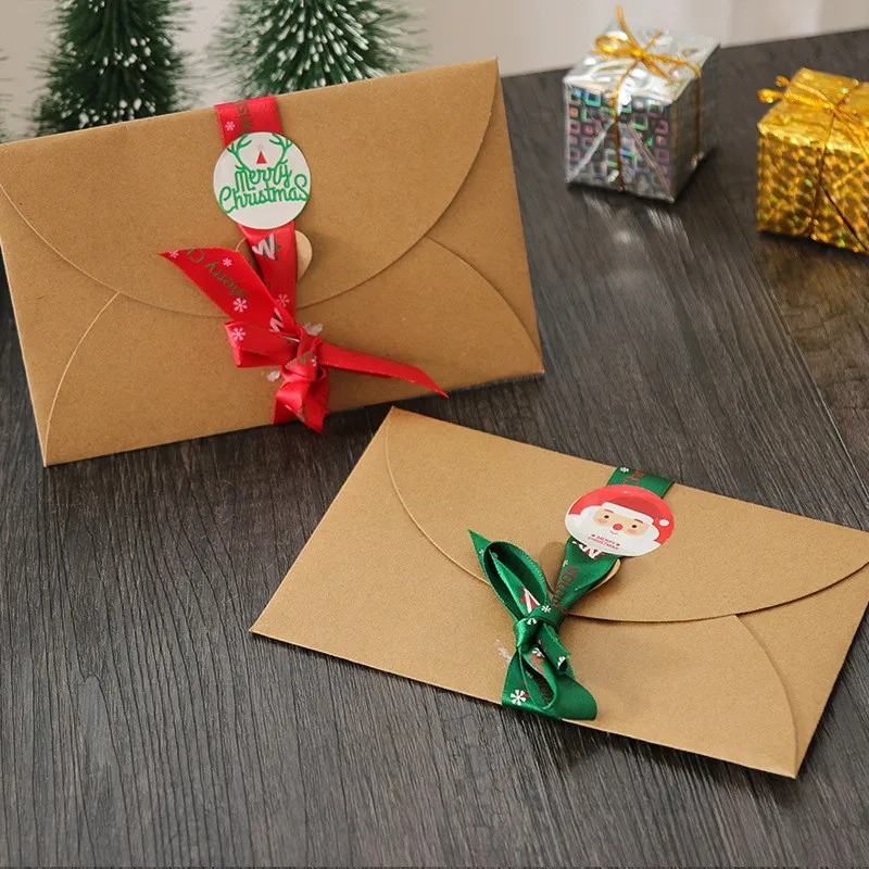 Wedding favor christmas Invitation Greeting gift Kraft Paper string tie Envelope brown packaging with Ribbon with love buckle