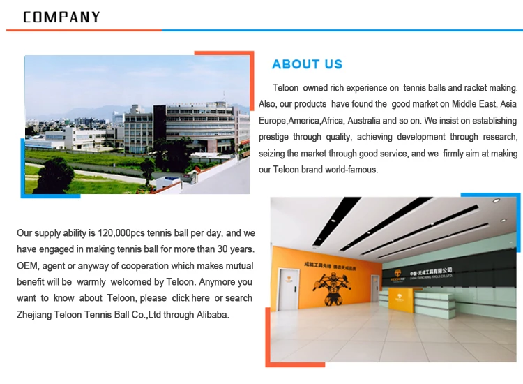 Zhejiang Teloon Tennis Ball Co.,Ltd is a global leading professional manufacturer of high quality tennis ball, tennis racket and tennis accessories.