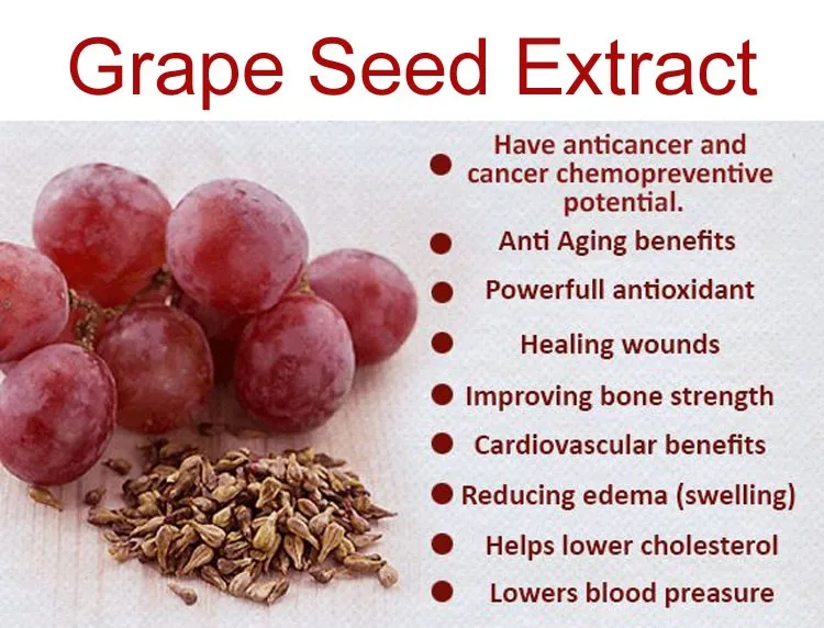 The polyphenols in grape seed extract, especially proanthocyanidin, have been shown to have a number of beneficial effects. By increasing the levels of antioxidants in your blood stream (and body), grape seed extract can help counteract the harmful effects of free radicals.