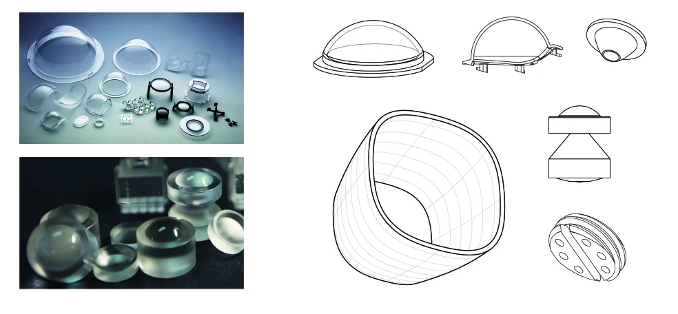* Free-form surface, aspheric surface, display compound eye and Zerinike, LED street lenses, etc.