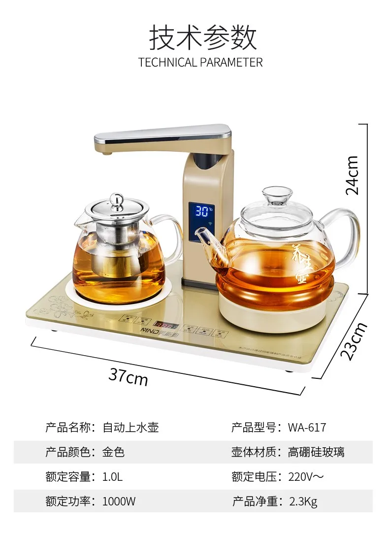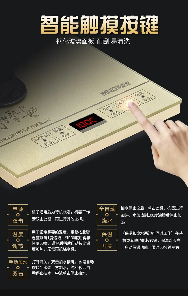 The LCD screen monitors the water temperature at any time, the capacity of the kettle, and shows the pumping water.